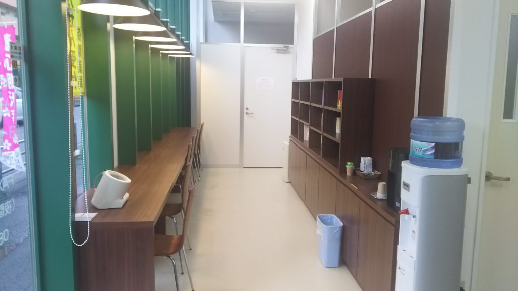 令和1年7月6日~7日で、康心鴨池薬局(鹿児島市真砂本町・ニシムタスカイマーケット鴨池1F)店舗改装し、地域の「幸せ創造ひろば」としての特色を強め、カウンターカフェ・スペースと本棚を創作いたしました。「街のほっとする図書室」として薬局入口に掲示してあります。患者さんがお薬を待っておられる間、くつろいでいただきたいことと、スマホ充電もできるようコンセントもカウンターテーブルに設置しております。タウン情報誌、小説、漫画を取り揃え、飲み物を飲みつつ、くつろいでいただけるよう癒しのライティング空間を設けました。是非、処方せんなくても、お越しいただき、地域の皆さまでおくつろぎ頂きたいと思います。(康心鴨池薬局)