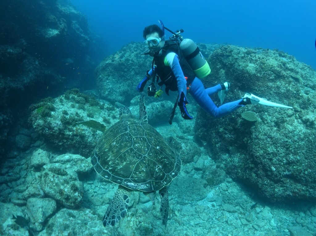沖永良部島の海は透明度が高い上に、魚影が濃く、カメやクジラにも遭遇でき素晴らしいです。魚釣り、星空観測など自然満喫できます。(結調剤)